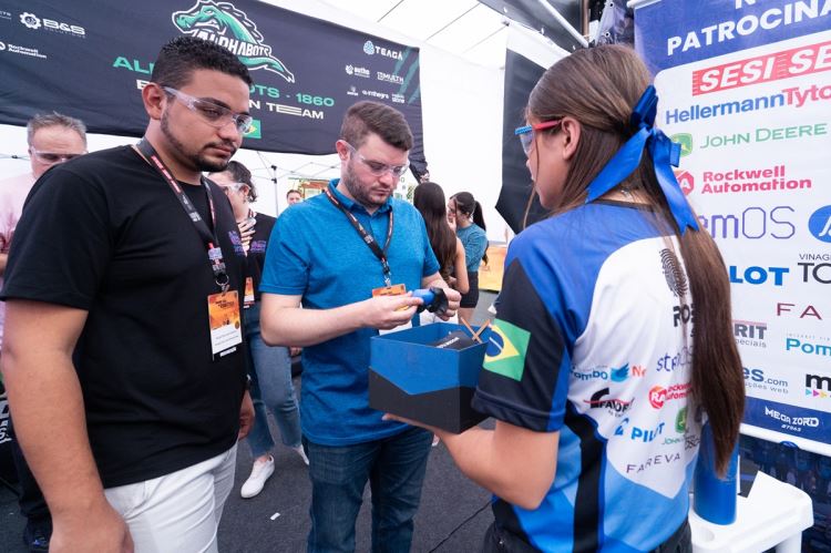 De Jundiaí, a equipe Megazord apresenta o projeto Woodie Flowers Box, que já alcançou 69 países em três anos. A iniciativa funciona por meio de uma rede de embaixadores, equipes ao redor do mundo que replicam as atividades em suas comunidades. “Conseguimos enviar o projeto até para a África e receber o retorno de crianças aprendendo e montando os próprios brinquedos. Isso mostra o alcance real do que fazemos”, conta Maria Eduarda Casemiro, de 17 anos.