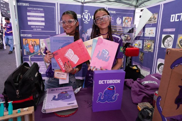 Já a equipe Octopus, da Escola SESI SENAI Bauru, apresenta o Octobook, um material didático que utiliza recursos simples e acessíveis para ensinar conceitos de STEAM de forma prática.